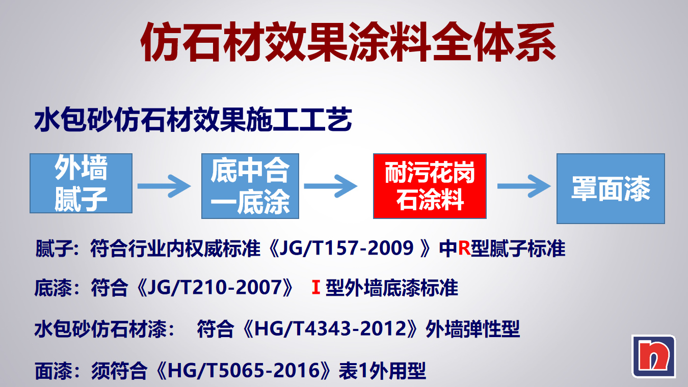 為了保證面漆的完整性效果,采用外墻專用找平膩子,附著力好、強度高、防裂縫、起泡等現象。